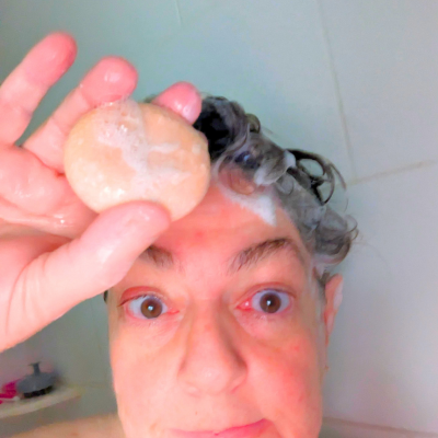 Yea, that's me sharing my morning shower with you using a bar of shampoo. Shampoo in plastic bottles are loaded with chemicals soaking in water and drying in your hair. If you want to decrease the amount of chemicals absorbed into your body, shampoo is a good place to start ...